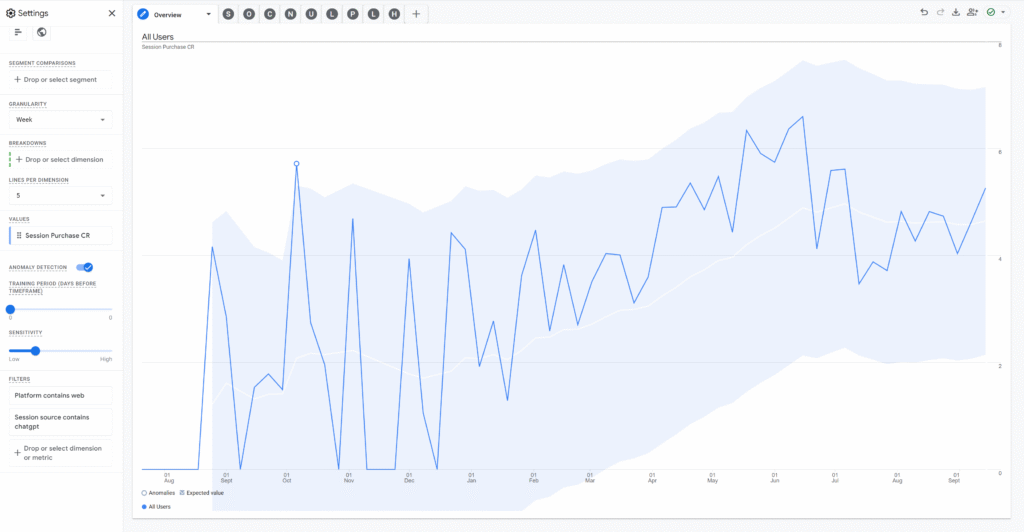 Screen below is Conversion Rate but only from Chat GPT traffic.